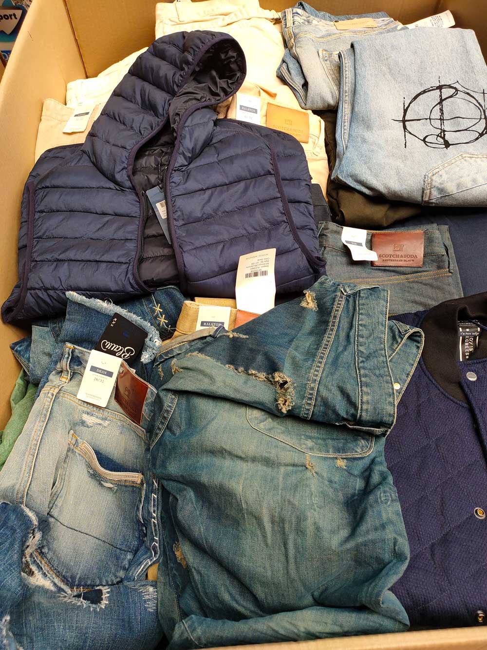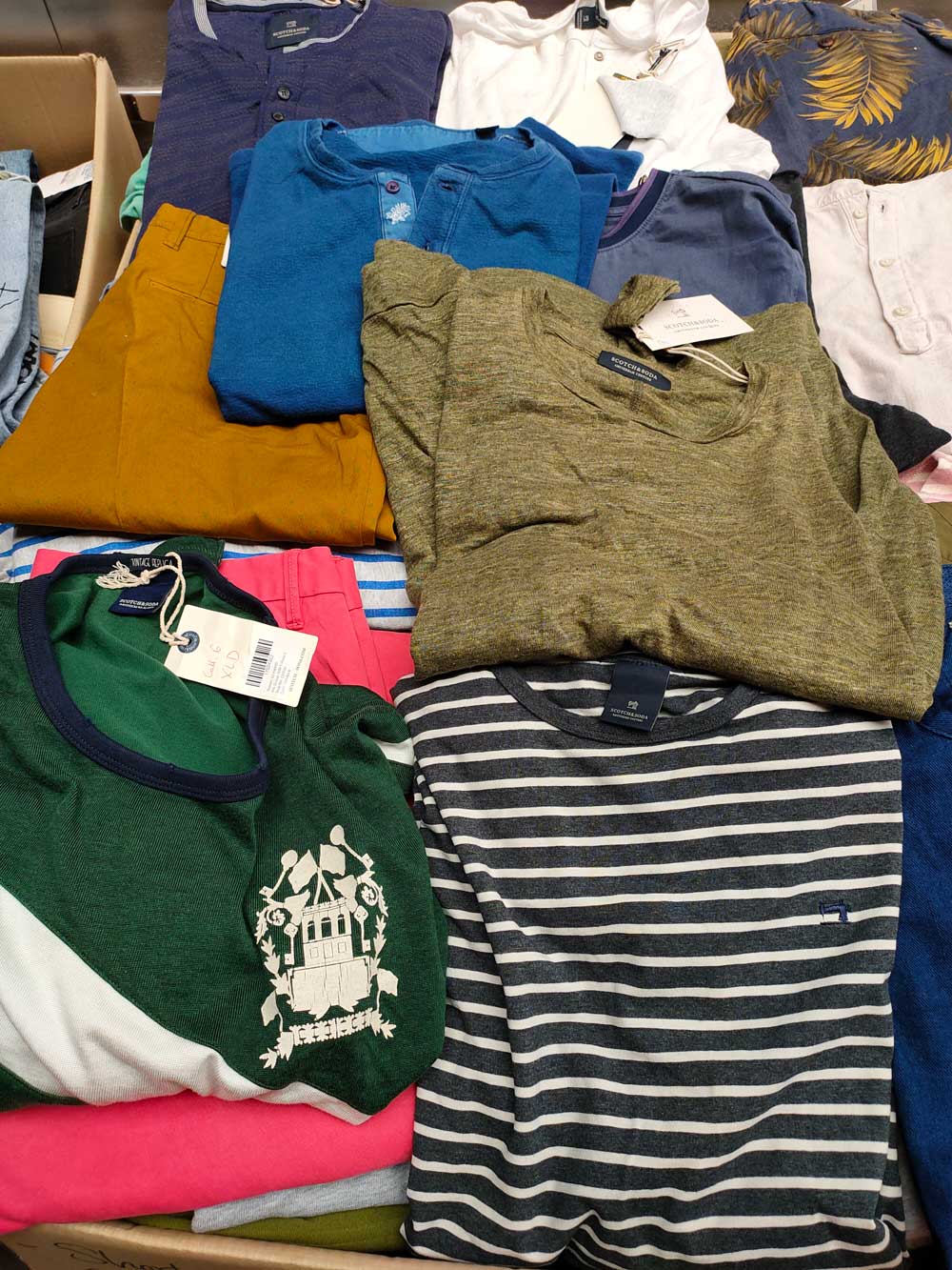 پکیج پوشاک اسکاچ اند سودا - Scotch and Soda - این پیکج شامل 200 عدد شلوار و 200 عدد شلوارک و 100 عدد تی شرت و پیراهن می باشد. قیمت این پکیج بر اساس تعداد آن محاسبه می شود.