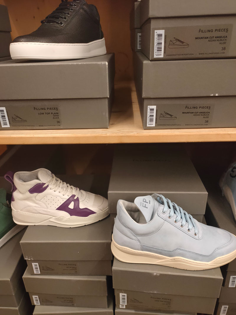 برند فیلینگ پیسز هلندی - Filling Pieces - یکی از برندهای معروف و معتبر در اروپا و بویژه در هلند است. محصولات این کمپانی جایگایی برتر از برندهای مثل نایکی، آدیداس، اکو و غیره دارد، چرا؟ بخاطراینکه این برند برای افرادی که در بند فشن و تجمل هستند طراحی شده است. بطور عمومی محصولات این برند از چرم طبیعی مرغوب تهیه و تولید می شوند. بسیار راحت و خوش فرم هستند. در هلند هنرمندان یکی از افرادی هستند که دلبستگی خاصی به این برند دارند. قیمت های درج شده روی این محصول عموماً از 190 یورو به بالا هستند.