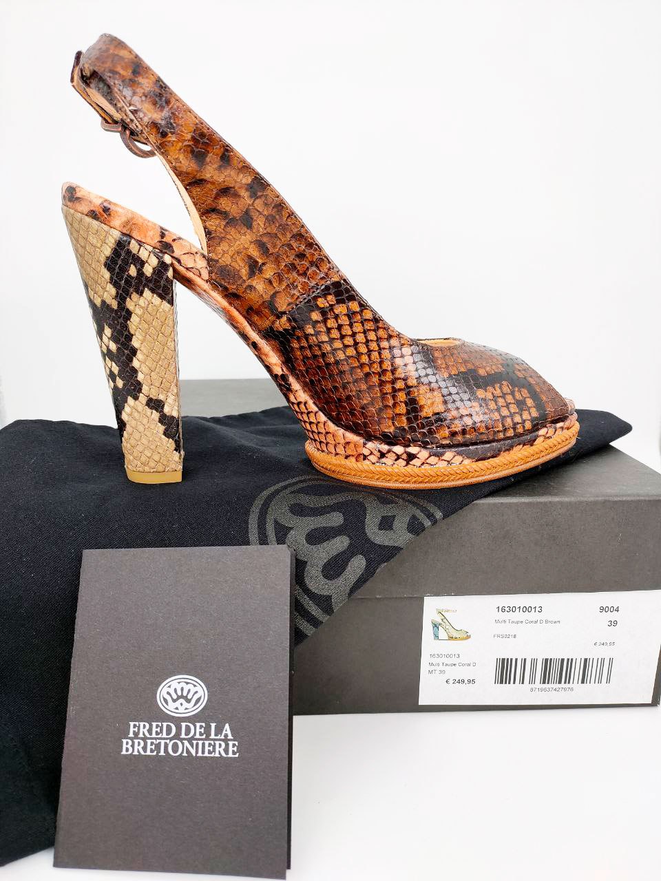 کفش مجلسی فرد د لا برتونیره - Fred De La Bretoniere – کاملا از چرم مرغوب تهیه شده و تماماً به صورت دست ساز در کشور اسپانیا ساخته شده است. این کفش دارای یک ساک پارچه ای مخصوص همراه با کارت ویژه شناسایی است. لازم به توضیح است که معمولا این دست از کفش ها را بیشتر خانم های متمول برای مراسم ضیافت و پذیرایی استفاده می کنند. اگر شما هم می خواهید که در مجالس مهمانی و یا شب نشینی خوب درخشیده شوید، می توانید به این برند لاکچری اسپانیایی اعتماد کنید.