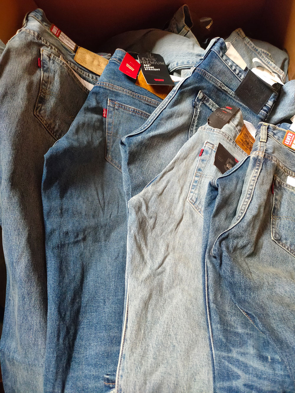 پکیج شلوار شامل وزن تقریبی 50 کیلو گرم شلوار مردانه لیوایز - ساخته شده در کشورهای ژاپن، چین، تایلند.